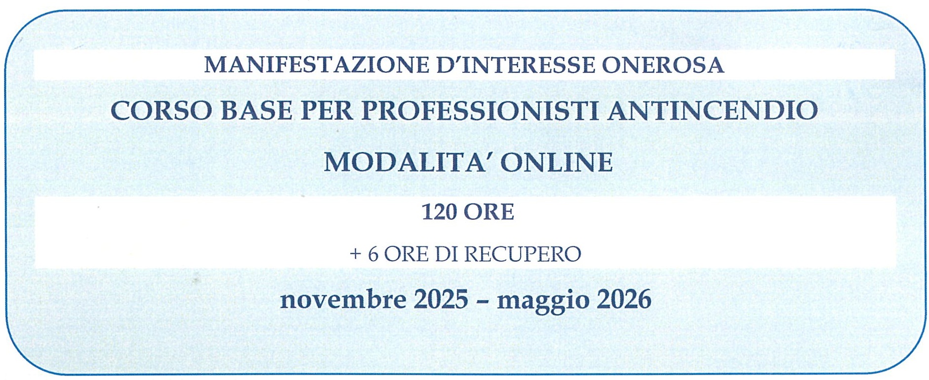 Manifestazione d'interesse onerosa - Corso BASE PER PROFESSIONISTI ANTINCENDIO - scadenza 15/10/2025