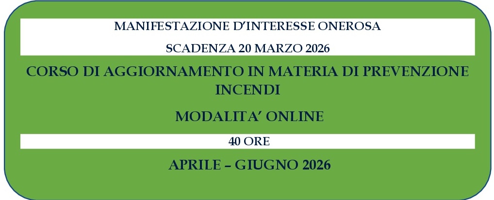Manifestazione d'interesse onerosa - Corso di AGGIORNAMENTO IN MATERIA DI PREVENZIONE INCENDI - MODALITA' FAD SINCRONA - 40 H - scadenza 20/03/2026