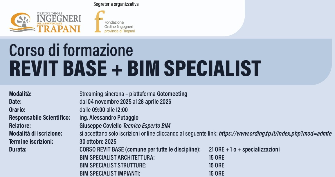 L´Ordine degli Ingegneri della Provincia di Trapani in collaborazione con la propria Fondazione ha in programma di organizzare a partire dal mese di gennaio 2026 il corso di aggiornamento per RSPP ...(Leggi Tutto)